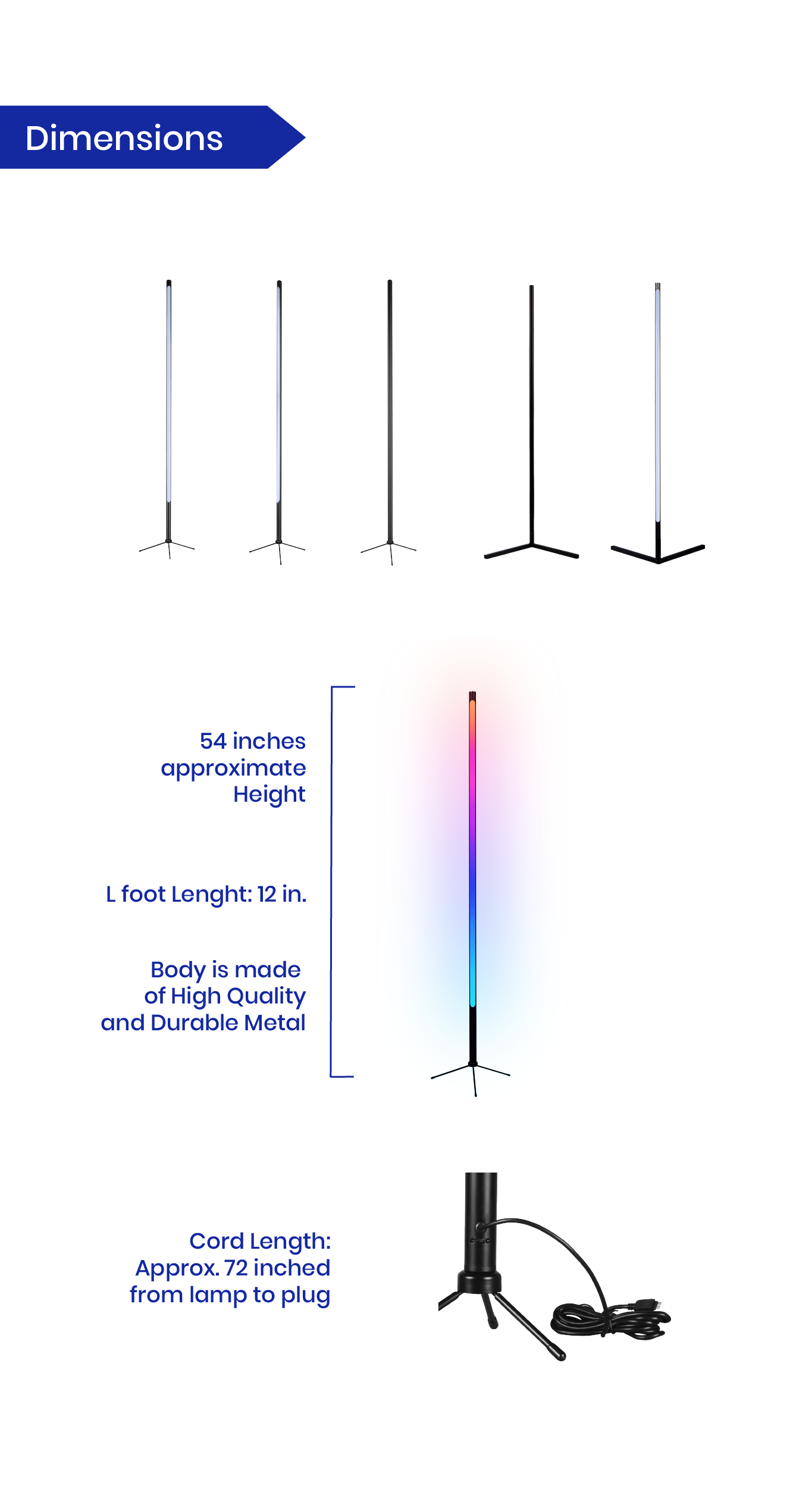 - Inclusions: 1 unit of Lasco Nordic Floor Lamp, Tripod, L Leg, Mounting Clips, Controller, Power Adapter, and instruction manual.