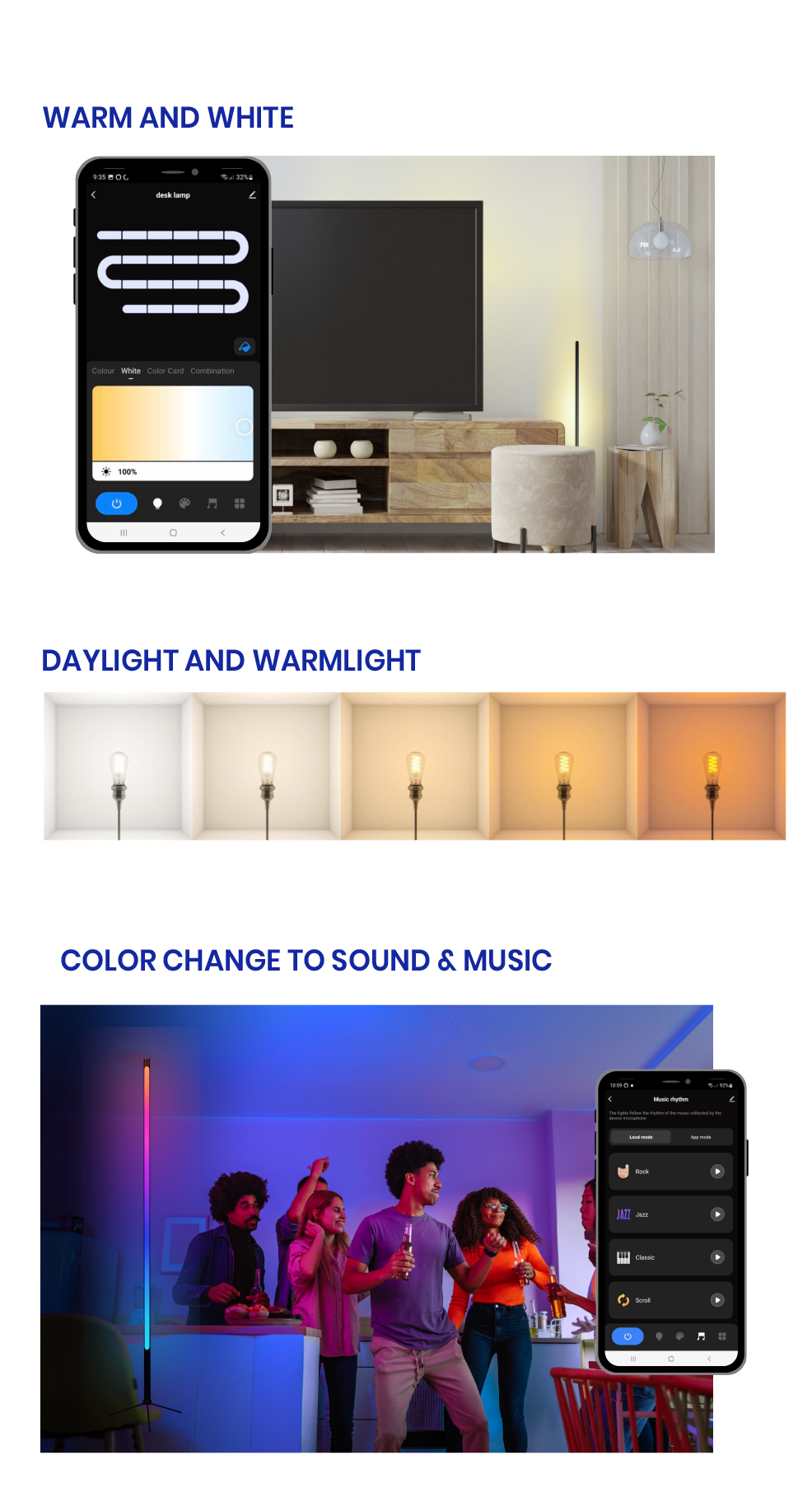 The Lasco Wifi Dreamlight Nordic Floor Lamp RGBIC is the perfect addition to elevate your home’s lighting experience with its 16 million color options and music-responsive features. This energy-efficient lamp offers customizable brightness, color presets, and voice command control, all accessible via the Lasco app, making it easy to create the perfect ambiance for any space. With no hub required and compatibility with popular smart home systems like Amazon Alexa, Google Home, and Siri, it provides effortless control from anywhere in the world.