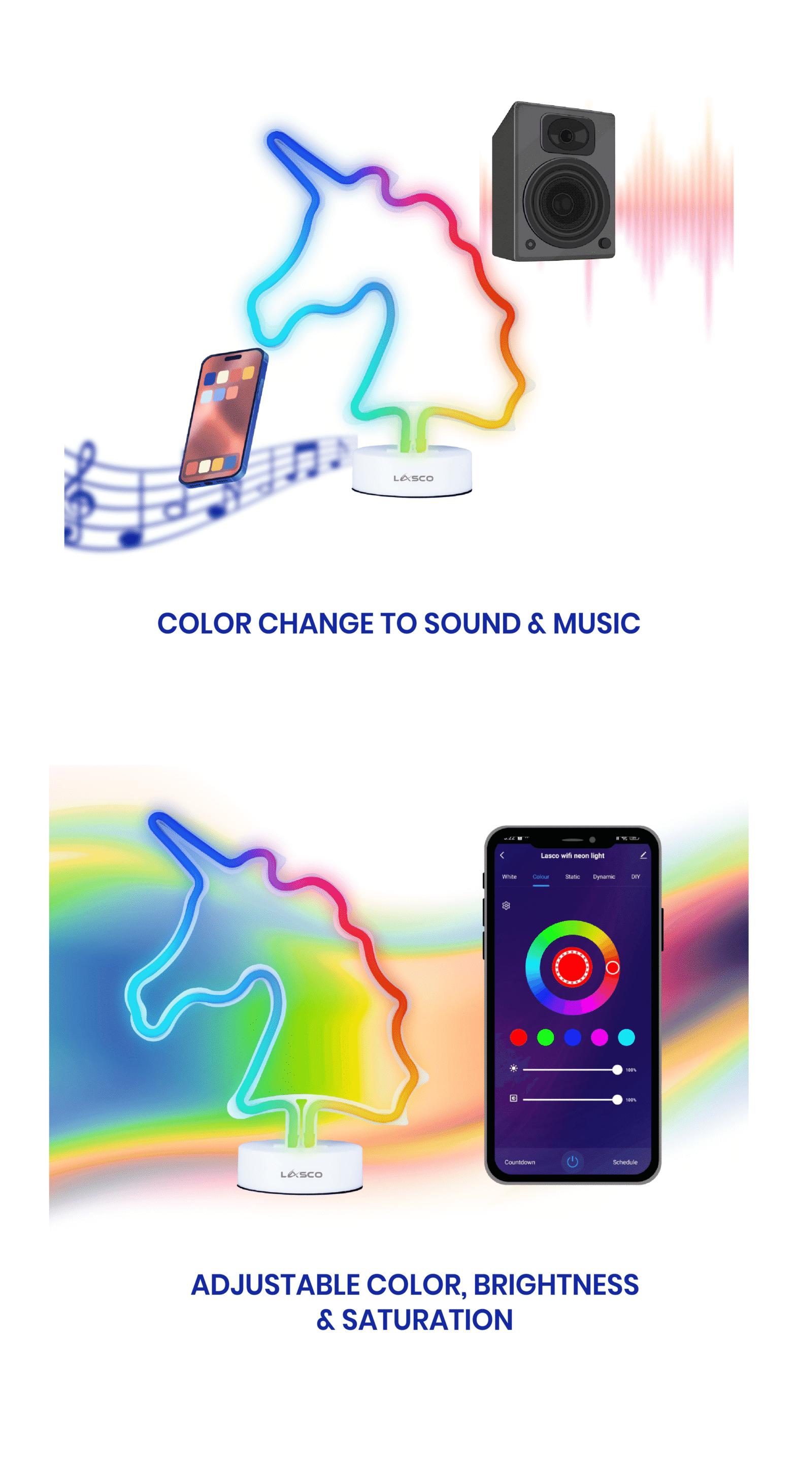 The Lasco Wifi Neon Lamp – Coconut is a stylish and versatile lighting solution designed to enhance your home with its 16 million vibrant colors and dynamic sound-responsive features. Controlled via remote or Wi-Fi, this lamp easily integrates with voice assistants like Alexa and Google Assistant, allowing you to adjust settings effortlessly from anywhere. With an energy-efficient design and a lifespan of up to 25,000 hours, the Lasco Neon Lamp brings both functionality and charm to any space without the need for a hub.