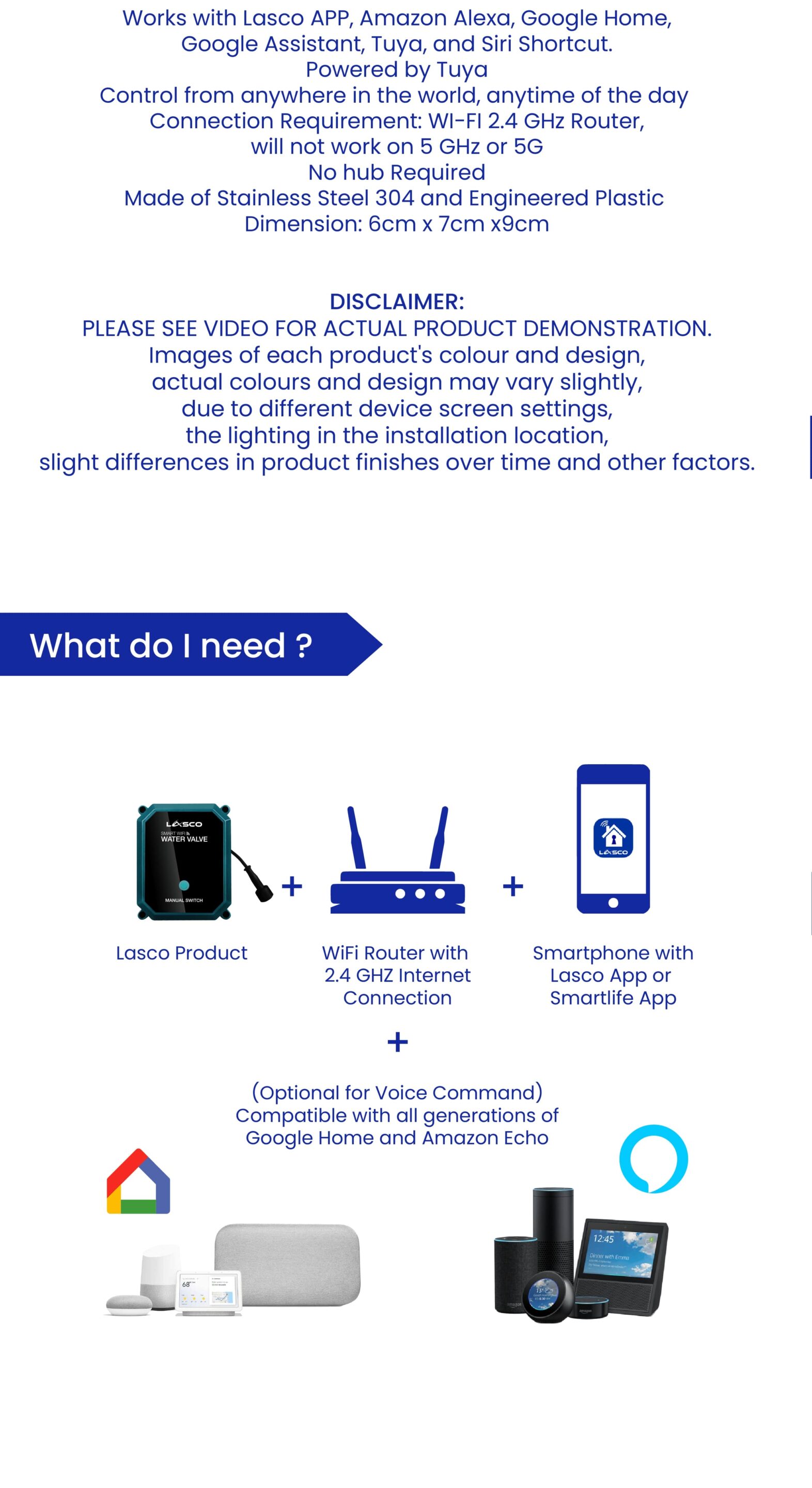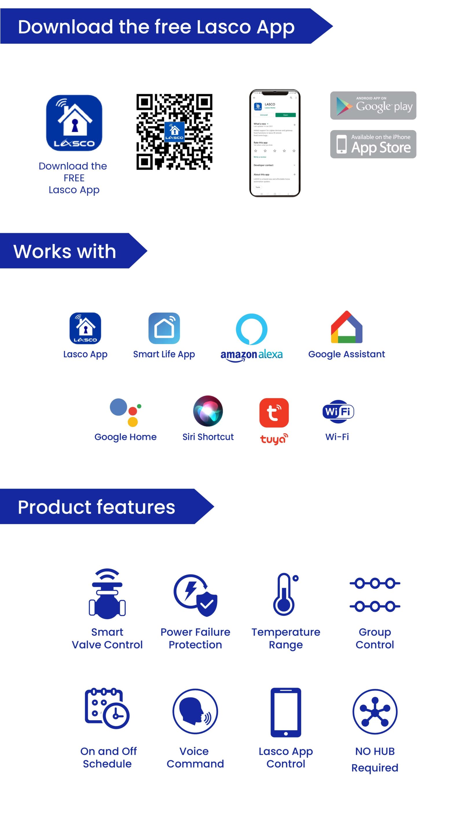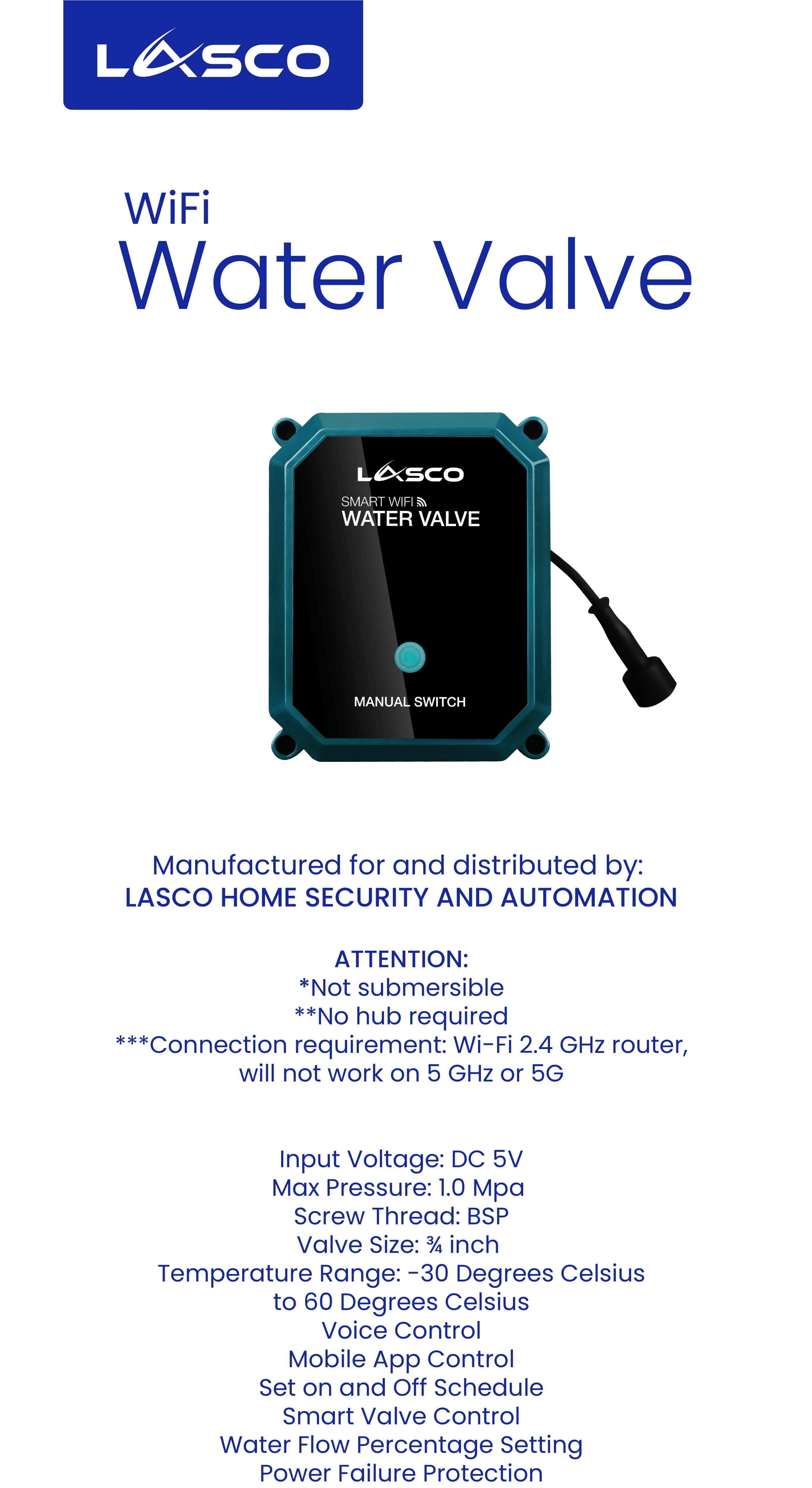 - No Hub Required (Use your Lasco Smart water valve without an additional use of a hub)