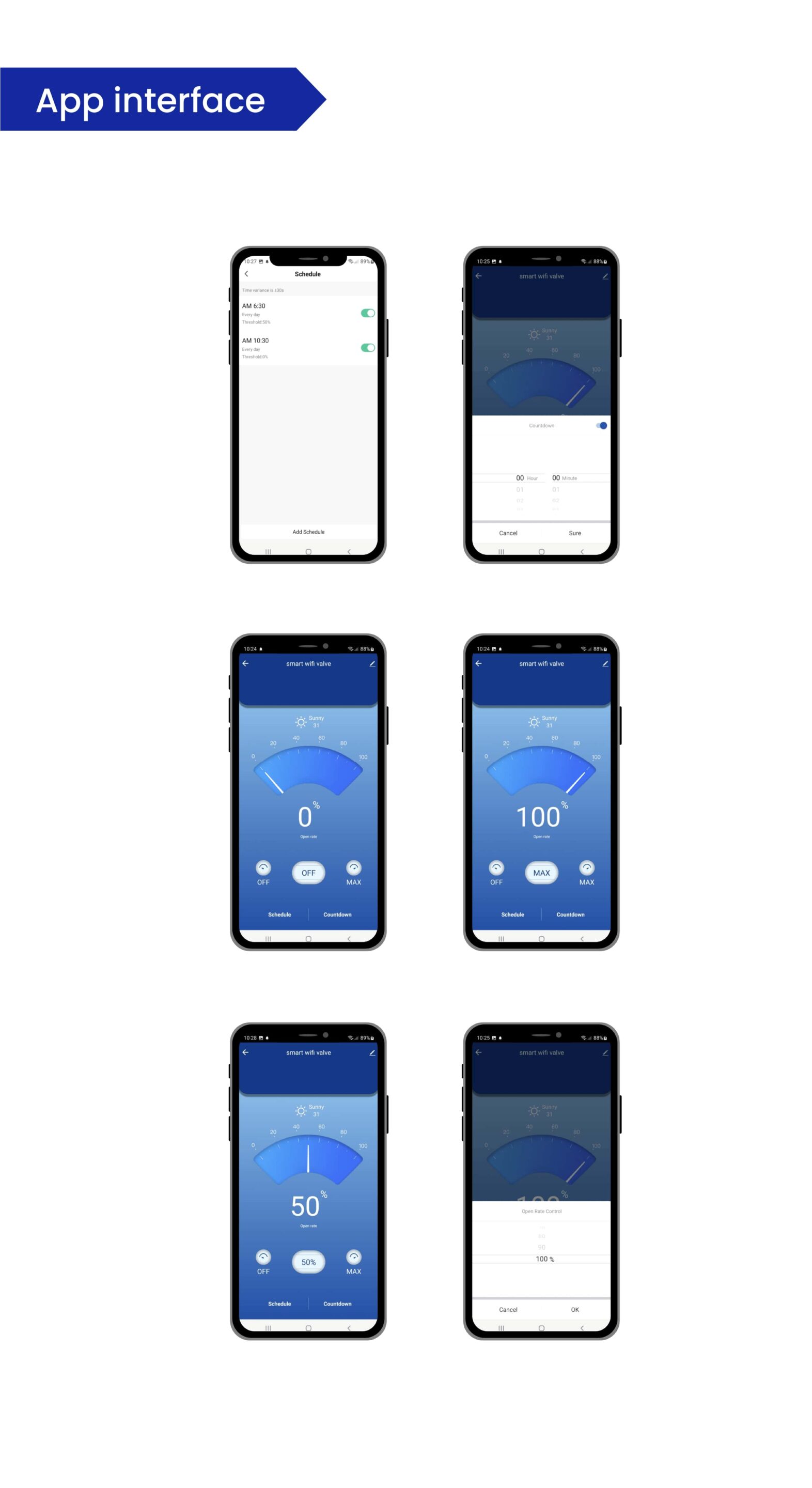 - Set On and Off Schedule (Set an on and off schedule timer on a smart water valve for everyday or varying days of the week.)