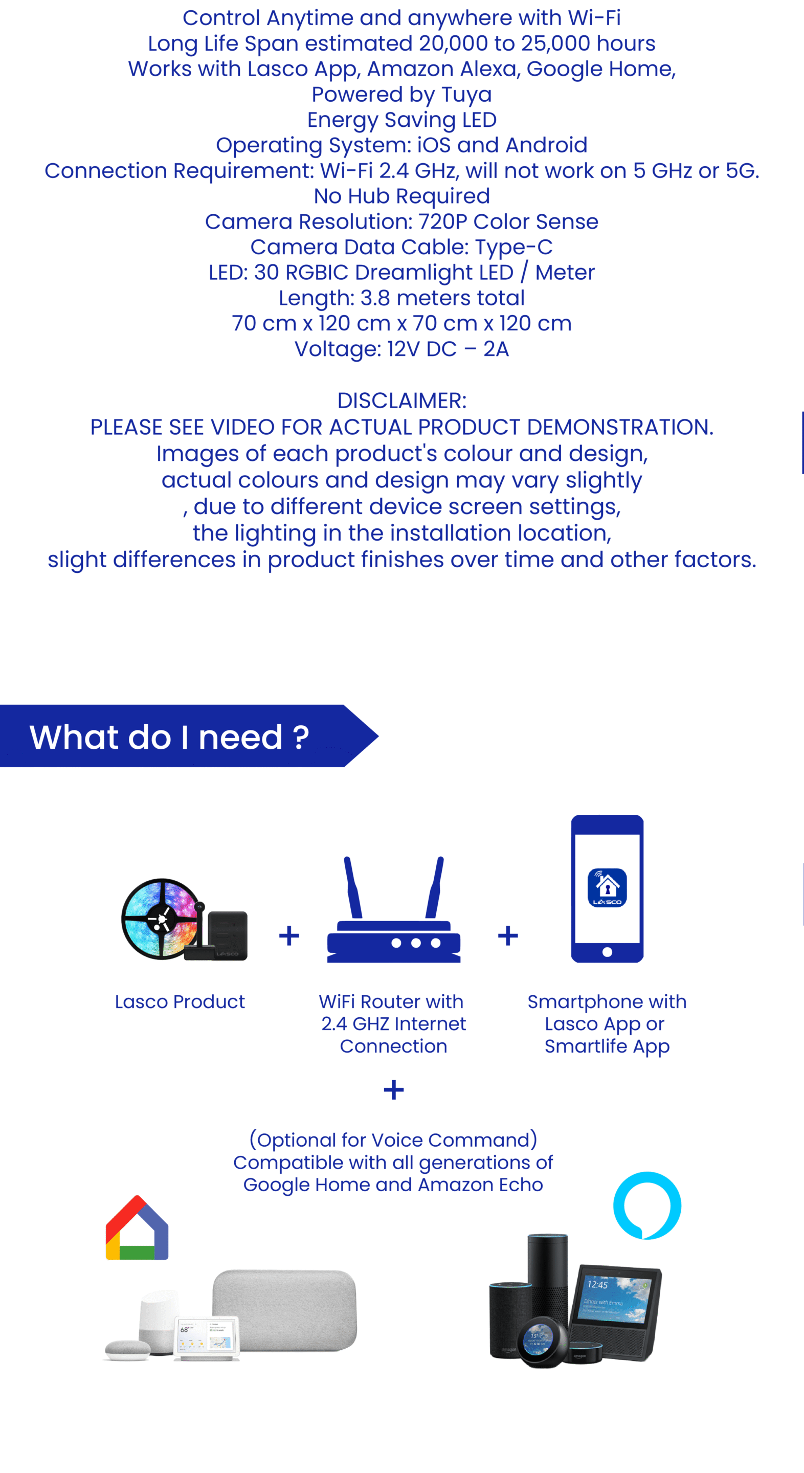 - Works with Lasco App, Amazon Alexa, Google Home, Google Assistant, Tuya and Siri Shortcut.