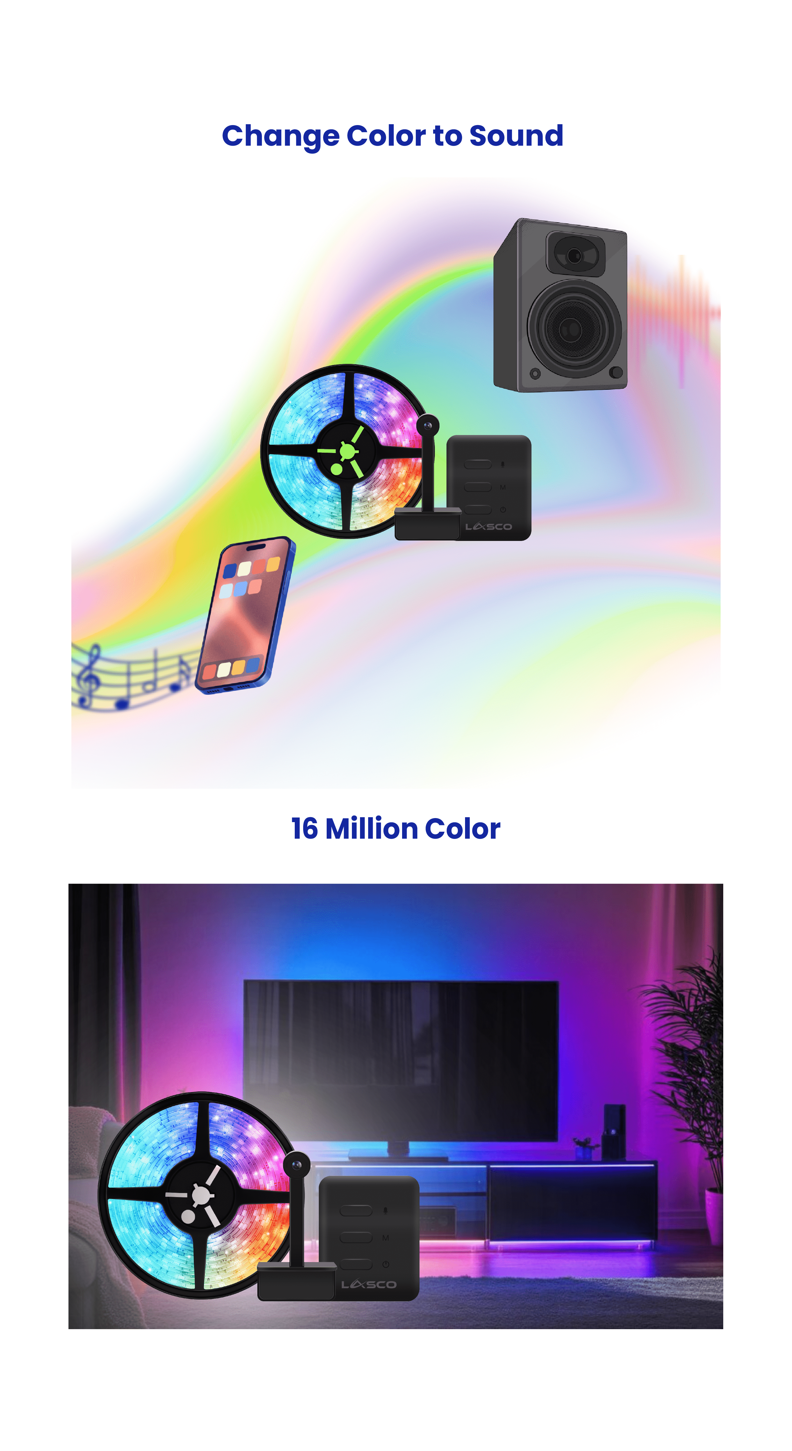 The Lasco WiFi TV Ambient Light Immersion Set transforms your home entertainment experience with its stunning 16 million colors and dynamic sound-responsive lighting. Designed exclusively for 55–65-inch TVs, this innovative system allows for effortless control via the Lasco app, voice commands, and programmable schedules, ensuring you can create the perfect atmosphere for any occasion. Enjoy exceptional versatility with features such as adjustable brightness, color changes, and compatibility with Amazon Alexa and Google Assistant, all while enhancing your living space with an immersive ambiance.