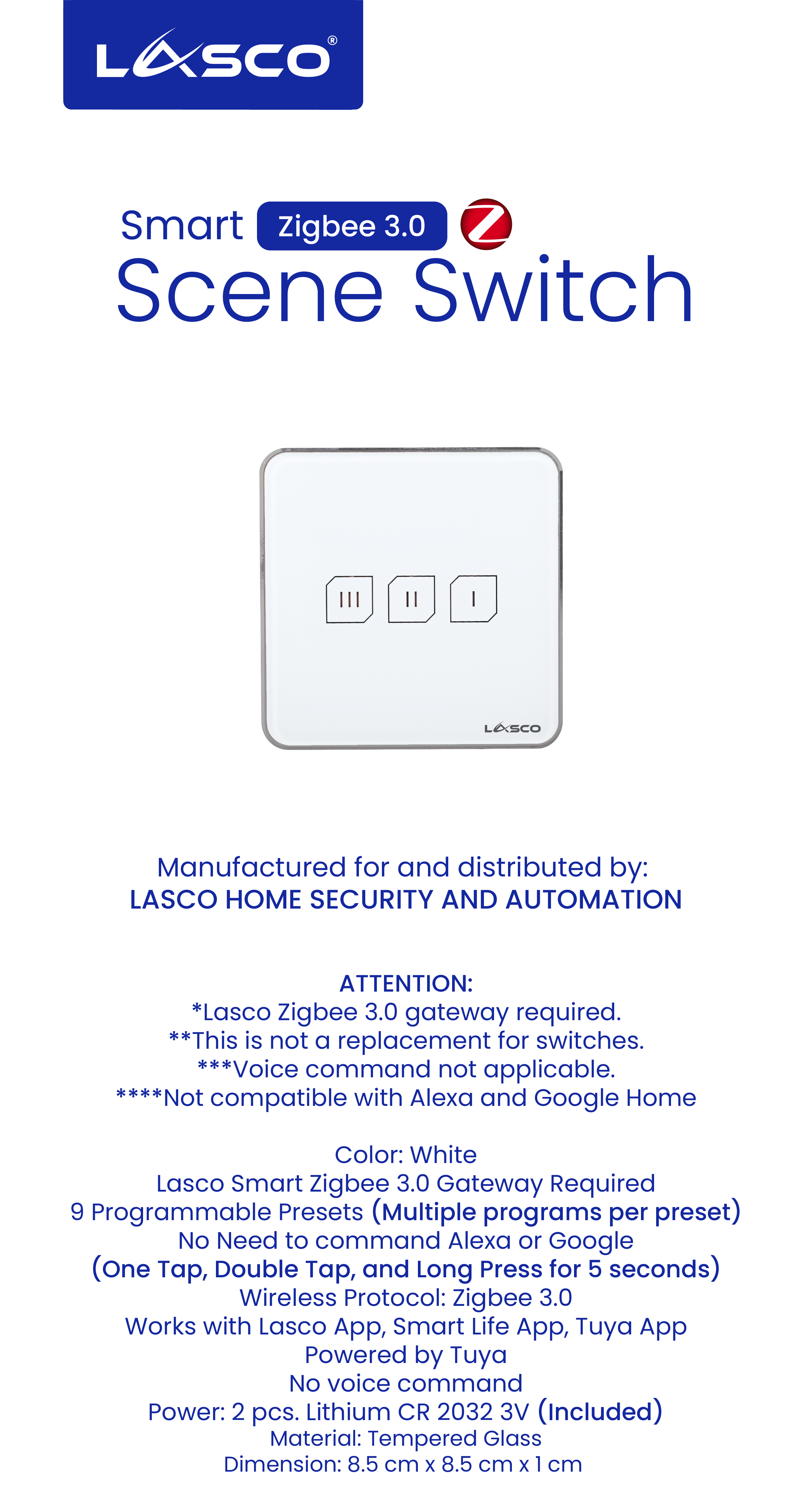 - Zigbee 3.0: Lasco Smart Scene Switch